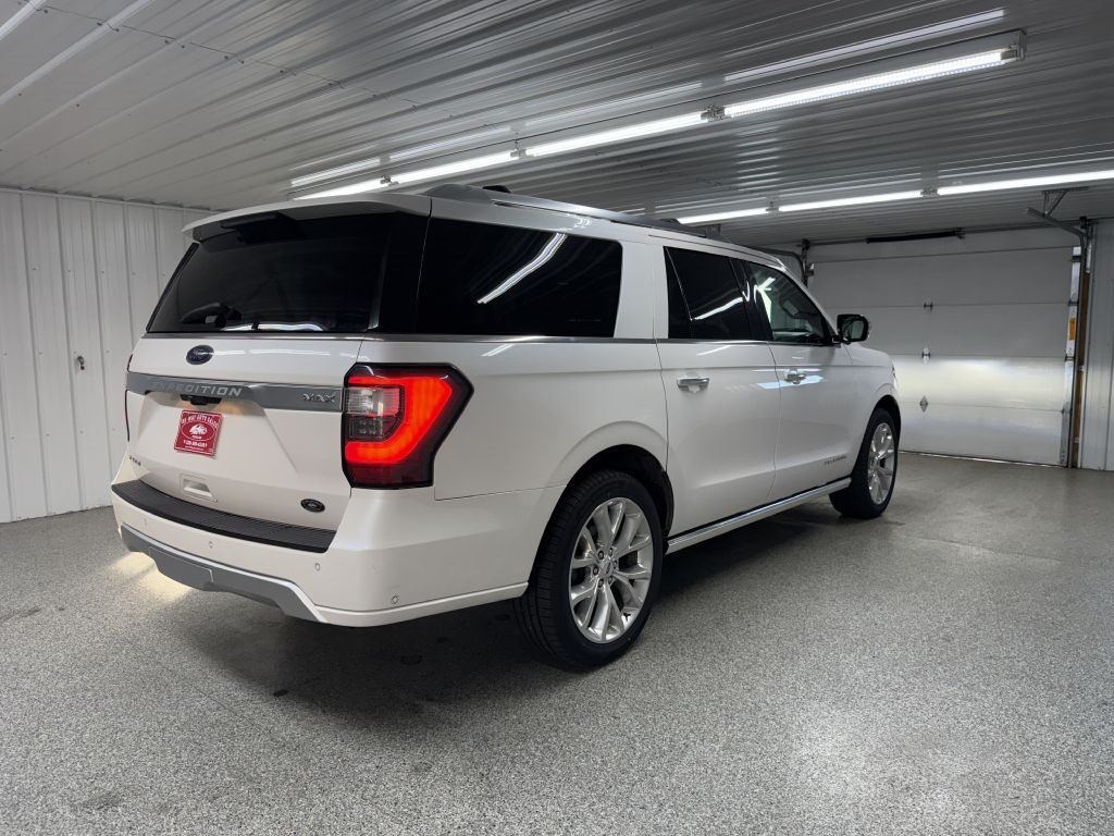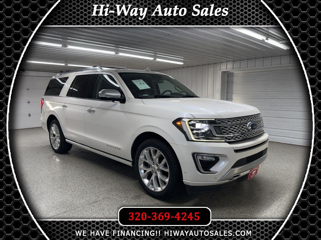 Recent Arrival! Odometer is 8957 miles below market average! 2018 Ford Expedition Max White Platinum Clearcoat Metallic Platinum 4WD 10-Speed Automatic MP3, Bluetooth, Clean CarFax, Leather, Heated Seats, Heated and Cooled Seats, Sunroof/Moonroof, Navigation/GPS/NAVI, DVD/Rear Entertainment/RES, 2nd Row Captain Chairs/Buckets, Power Lift Gate, Backup Camera, Remote Start, Cruise Control, Steering Wheel Controls, Keyless Entry, USB/AUX ports, MP3 player. Please call/text 320-369-4245 or visit our store @ 319 4th Avenue South. Pease, MN. Stop by for a test drive, and check out some of our financing options! Available only at Hi-Way Auto Sales, where the customer is #1. Family owned and operated since 1953!