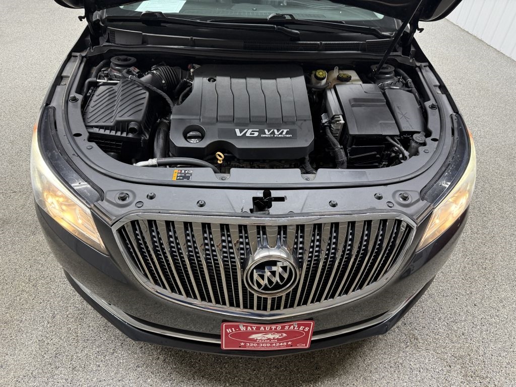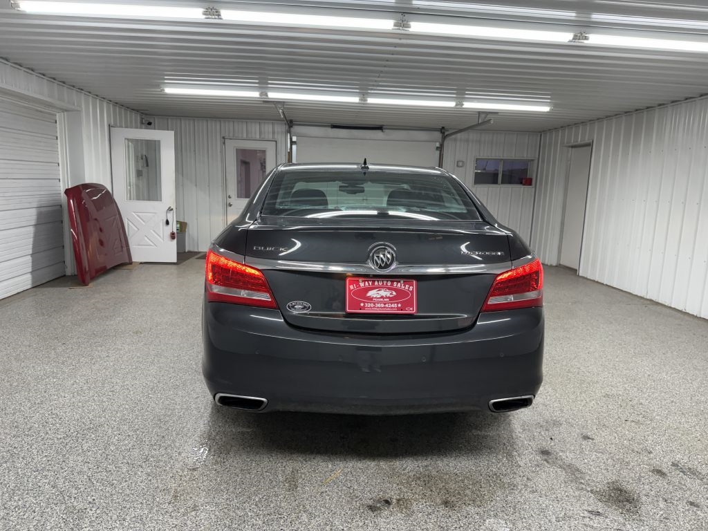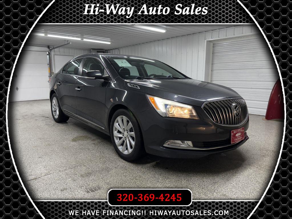 LOW MILES! RUST FREE! 2014 Buick LaCrosse Smoky Gray Metallic Leather Group FWD 6-Speed Automatic Electronic with Overdrive MP3, Bluetooth, Clean CarFax, Leather, Heated Seats, Navigation/GPS/NAVI, Backup Camera, Remote Start, Cruise Control, Steering Wheel Controls, Keyless Entry, USB/AUX ports, MP3 player, Parking Sensors. Please call or visit our store @ 319 4th Avenue South. Pease, MN 56363. Stop by for a test drive! Available only at Hi-Way Auto Sales, where the customer is #1. Family owned and operated since 1953!