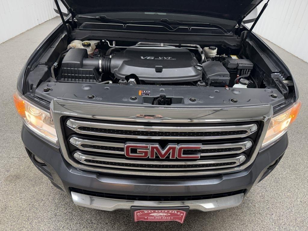 2017 GMC Canyon Cyber Gray Metallic SLT 4WD 8-Speed Automatic MP3, Bluetooth, Clean CarFax, Leather, Heated Seats, Navigation/GPS/NAVI, Backup Camera, Remote Start, Cruise Control, Steering Wheel Controls, Keyless Entry, USB/AUX ports, MP3 player, 4WD. Please call or visit our store @ 319 4th Avenue South. Pease, MN 56363. Stop by for a test drive! Available only at Hi-Way Auto Sales, where the customer is #1. Family owned and operated since 1953!