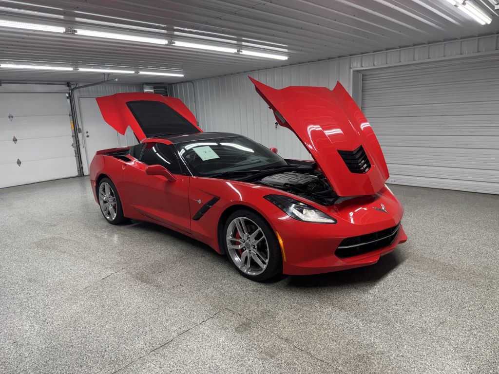 Recent Arrival! Priced below KBB Fair Purchase Price! 2015 Chevrolet Corvette Torch Red Stingray Z51 3LT RWD 8 Speed Paddle Shift with Automatic Modes MP3, Bluetooth, Clean CarFax, Leather, Heated Seats, Sunroof/Moonroof, Navigation/GPS/NAVI, Backup Camera, Remote Start, Cruise Control, Steering Wheel Controls, Keyless Entry, USB/AUX ports, MP3 player, Performance Tires. Please call or visit our store @ 319 4th Avenue South. Pease, MN 56363. Stop by for a test drive! Available only at Hi-Way Auto Sales, where the customer is #1. Family owned and operated since 1953!