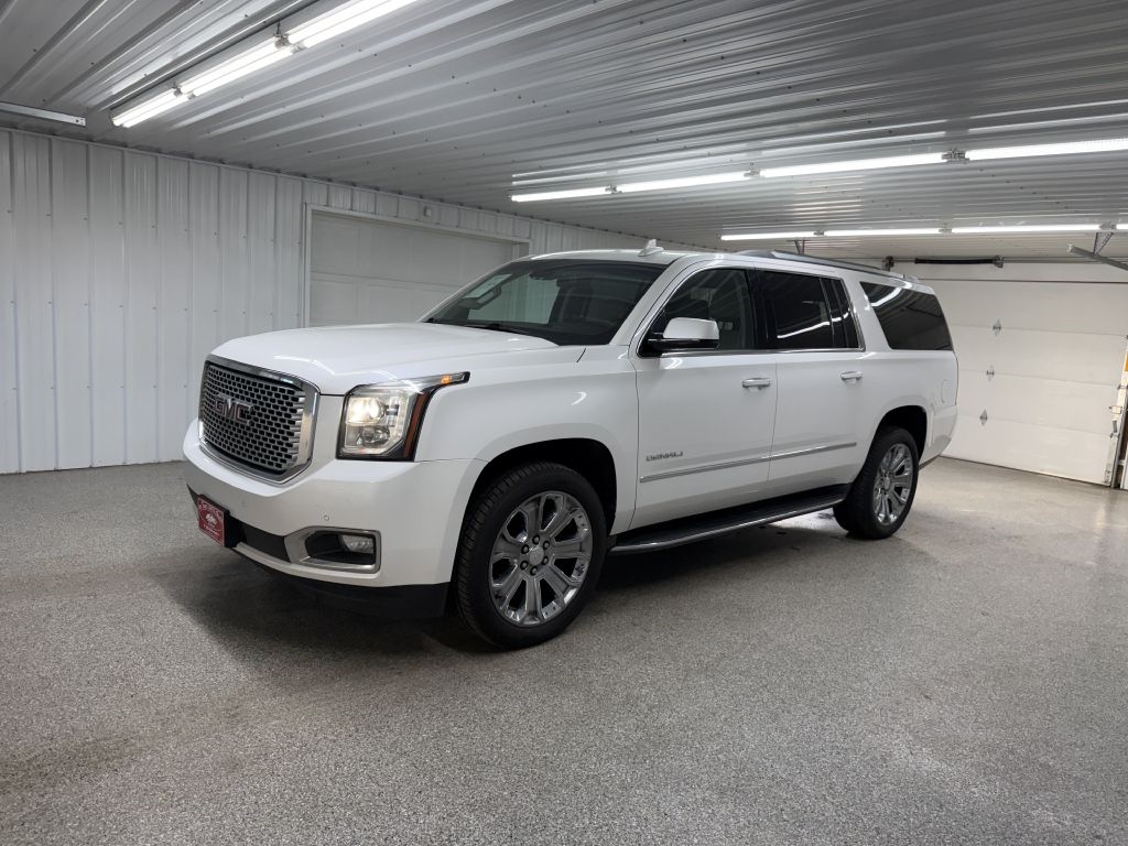 FLORIDA VEHICLE! 2017 GMC Yukon XL White Frost Tricoat Denali 4WD 8-Speed Automatic with Overdrive MP3, Bluetooth, Clean CarFax, Leather, Heated Seats, Heated and Cooled Seats, Sunroof/Moonroof, Navigation/GPS/NAVI, DVD/Rear Entertainment/RES, 2nd Row Captain Chairs/Buckets, Power Lift Gate, Backup Camera, Remote Start, Cruise Control, Steering Wheel Controls, Keyless Entry, USB/AUX ports, MP3 player, Performance Tires, All Weather Package, 7 Passenger, Tow Package, 4WD. Please call or visit our store @ 319 4th Avenue South. Pease, MN 56363. Stop by for a test drive! Available only at Hi-Way Auto Sales, where the customer is #1. Family owned and operated since 1953!
