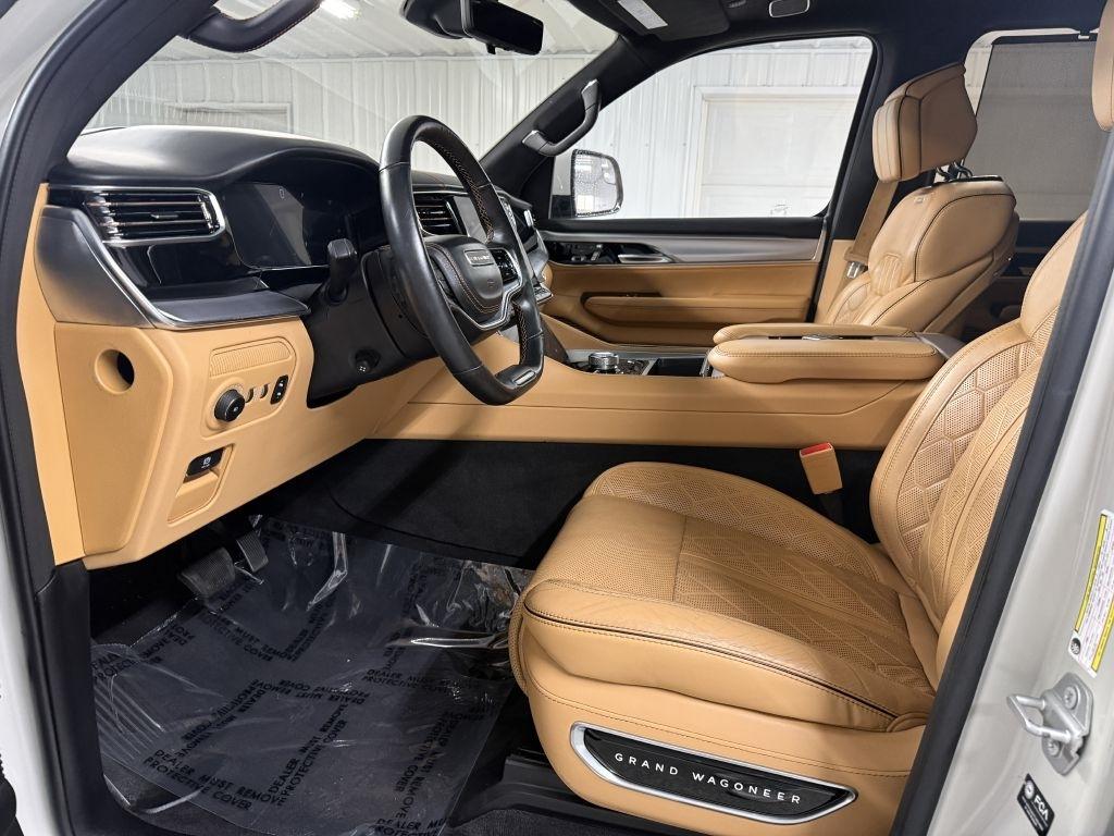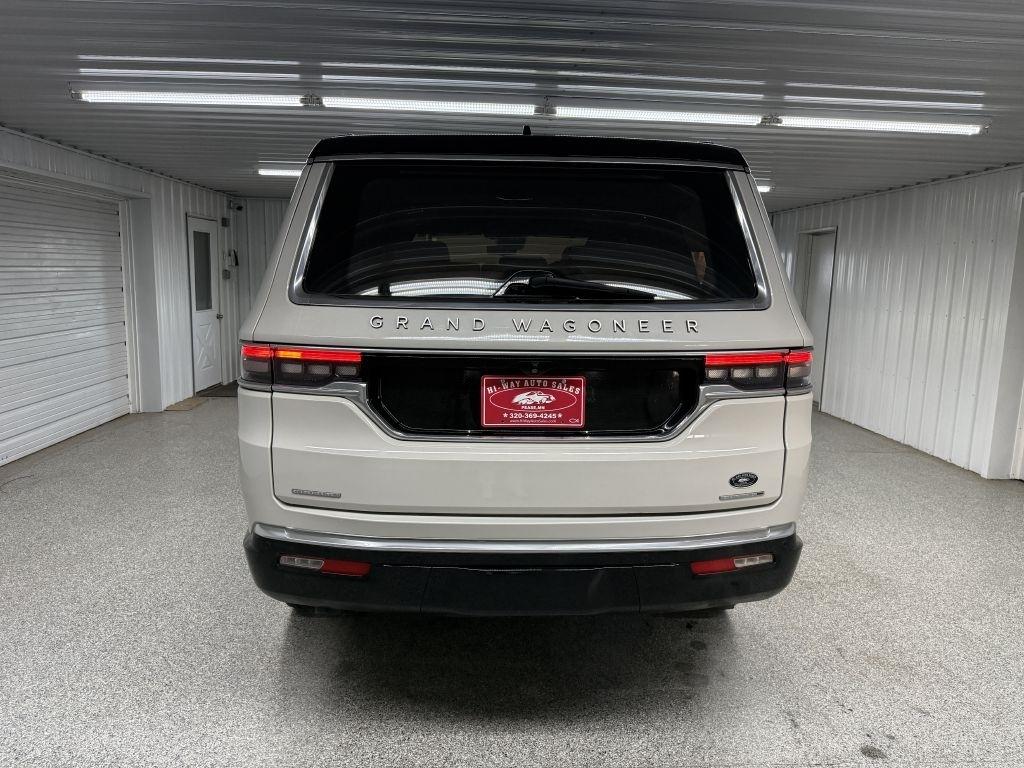 Recent Arrival! 2022 Jeep Grand Wagoneer Luxury White Pearlcoat Series III 4WD 8-Speed Automatic MP3, Bluetooth, Clean CarFax, Leather, Heated Seats, Heated and Cooled Seats, Sunroof/Moonroof, Navigation/GPS/NAVI, 2nd Row Captain Chairs/Buckets, Power Lift Gate, Backup Camera, Remote Start, Cruise Control, Steering Wheel Controls, Keyless Entry, USB/AUX ports, MP3 player, All Weather Package, 7 Passenger, Collision Avoidance. Please call or visit our store @ 319 4th Avenue South. Pease, MN 56363. Stop by for a test drive! Available only at Hi-Way Auto Sales, where the customer is #1. Family owned and operated since 1953!